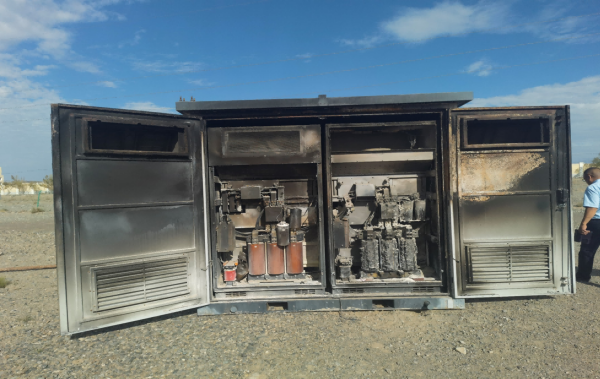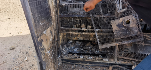 电弧将电气材料熔化和蒸发,这些热量通过辐射形式使可燃烧材料,起火,非可燃性材料热分解。同时材料熔化、蒸发产生高温高压气体,形成炽热的金属和非金属材料颗粒射流喷出,给IGBT及周边电力电子元器件造成严重损坏。故障电弧燃烧所产生的能量,主要与故障电流及电弧燃烧的时间有关。若电弧燃烧持续时间超过100ms,所释放的能量开始急剧增加,4--6s内烧毁IGBT驱动板及周边线缆,7--10s烧毁母排滤波电容并引发爆燃,火势将失控!